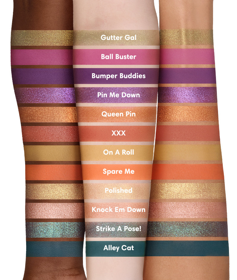 Coming to a bowling alley near you! Queen pin is a jewel toned palette that features 6 shimmers and 6 mattes inspired by the colors of your favorite childhood bowling alley. The retro tones are perfect for all autumn and fall looks.