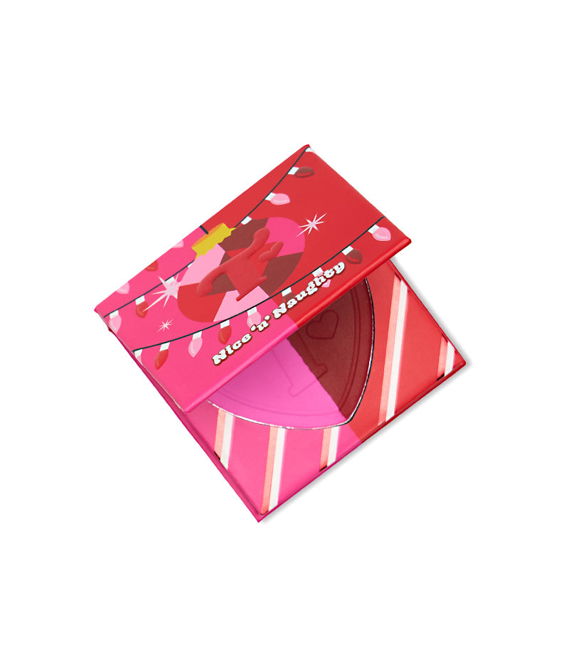 Why be naughty or nice when you can be both? Channeling Trixie and Katya In one single blush, we paired a true hot pink and deep red that can be worn alone or mixed for a unique shade.